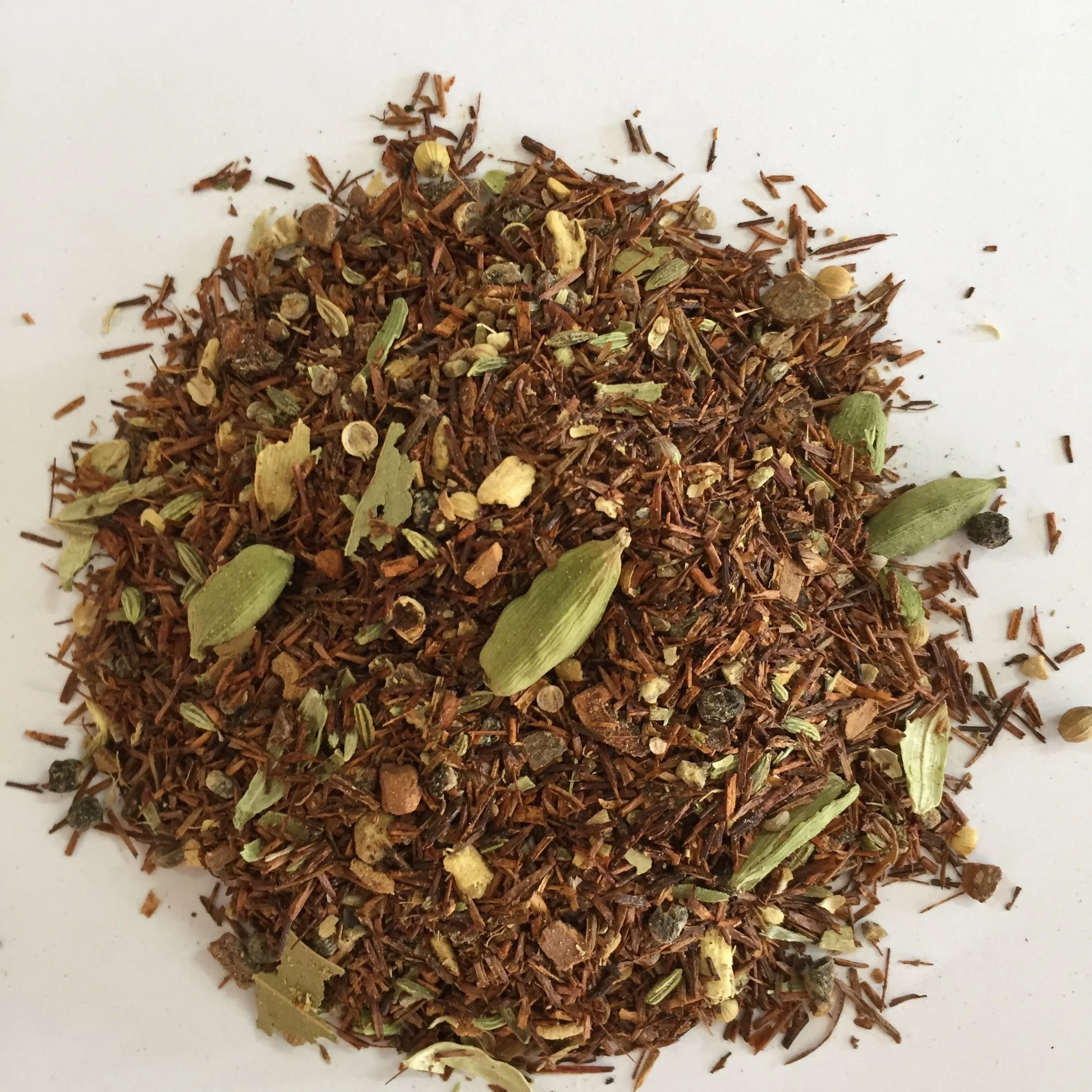 Ingredients: Certified organic Rooibos (South Africa), certified organic ginger, cardamom, cinnamon, liquorice root, cloves, fennel, pepper, star anise, coriander seed & bay leaf.